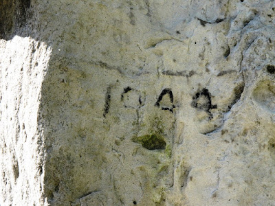 Auch wenn der Gedanke naheläge; der Brocken ist jedoch nicht von oben heruntergepurzelt sondern der traurige Rest einer ehemals stolzen und vieeeel größeren Klippe. Der Sandsteinanteil (99,9999%) ist erodiert und nur dieser kleine Teil aus Granit übrig geblieben. Erst auf die Nähe zu sehen: die eingeritzten Hochwassermarken.